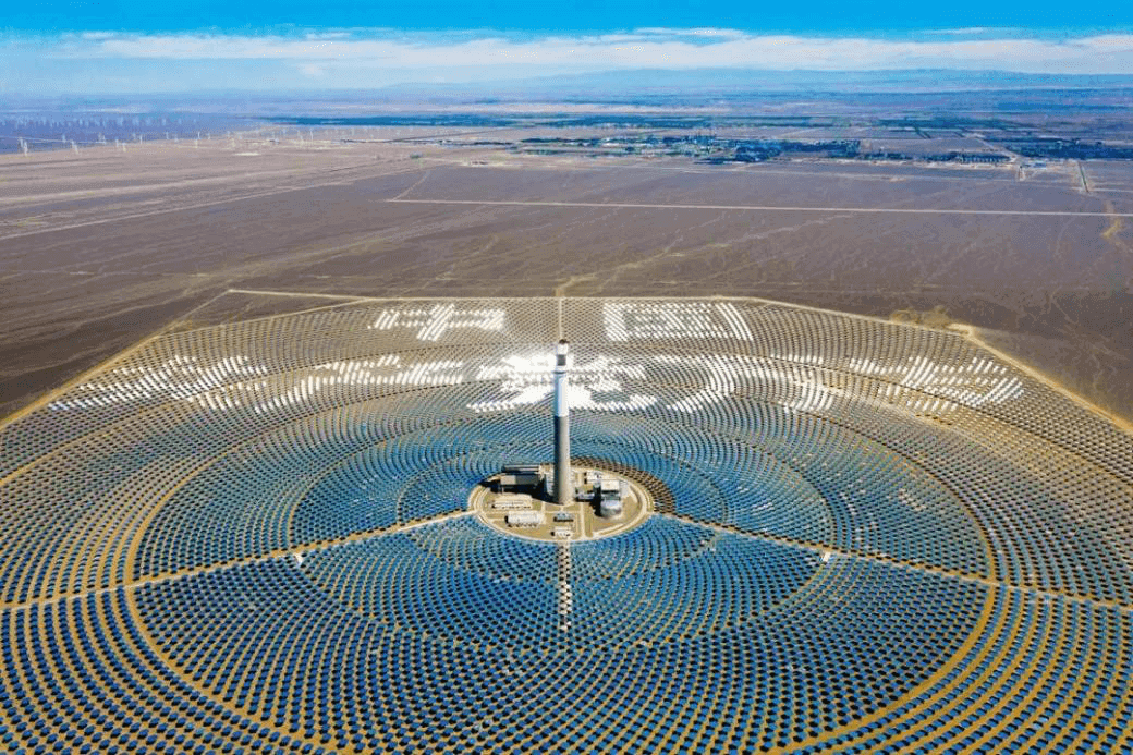 新疆哈密塔式光热电站拼组巨幅标语献礼建党百年